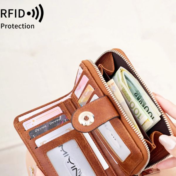 Ce portefeuille compact allie design rétro et technologie moderne avec protection RFID intégrée, idéale pour éviter les vols de données. Fabriqué en cuir PU de haute qualité, il est doux au toucher et résistant à l'usure quotidienne.